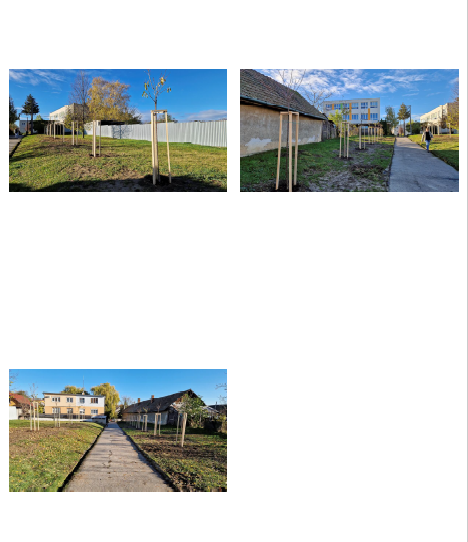 Projekt bol zameraný aj na výsadbu a údržbu zelene v obci. Vÿsadba stromov je najúčinnejśím riešením ako znížif obsah CO2 v atmosfére a zároveń prispief ku kvalite života na dedine. Stromy zadržiavajú vodu, ochladzujú prostredie, tvoria kyslík, čistia vzduch, chránia pred vetrom, znížujú hluk a zlepšujú aj zdravie. Vysadené stromy a zeleň udržujú a polievajú dobrovoľníci a aj zamestnanci obce.
